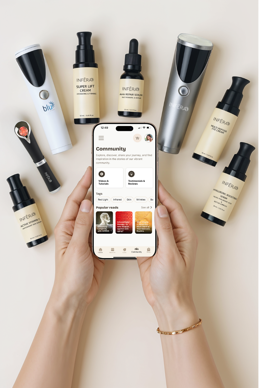 Red light therapy supports skin health by stimulating collagen production and improving circulation, which can lead to smoother texture, a more even tone, and a natural glow. Over time, it may help reduce the appearance of fine lines and support the skin’s ability to heal and renew itself—gently and without irritation.