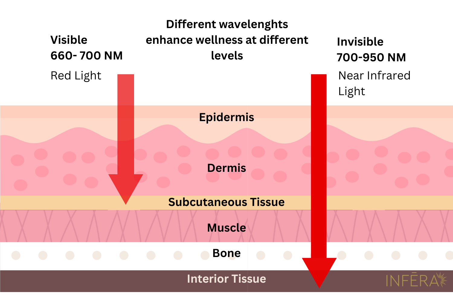 INFERA’s dual-wavelength technology combines red and near-infrared light in one session, offering a complete approach to recovery and repair.