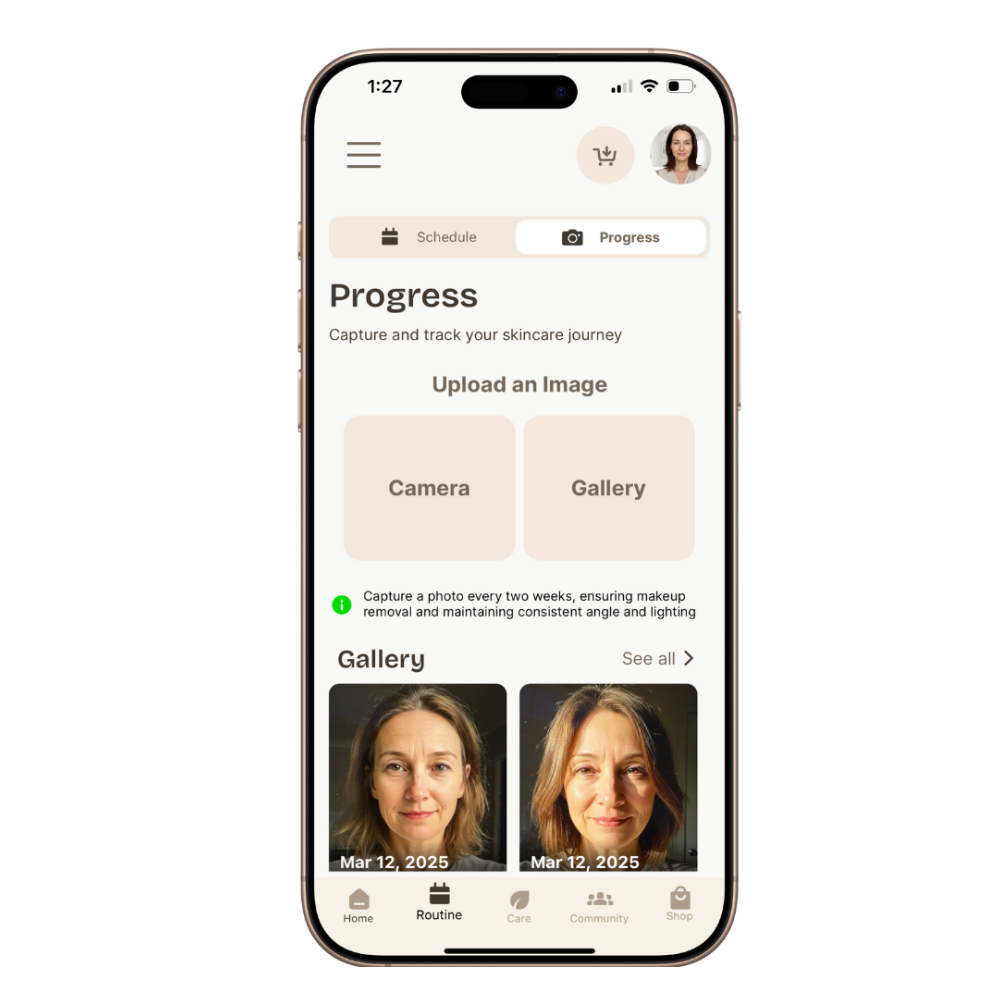 Capture your journey with side-by-side photo comparisons every two weeks. Our visual progress tracker helps you monitor real improvements — from smoother skin to brighter tone — so you stay motivated and confident.