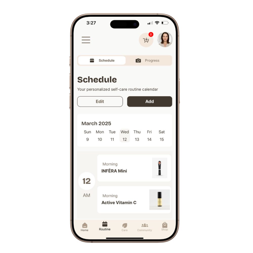 Stay on top of your light therapy and skincare regimen with a personalized calendar tailored to your skin goals, lifestyle, and INFERA device. Receive reminders, track sessions, and never miss a glow-up moment.