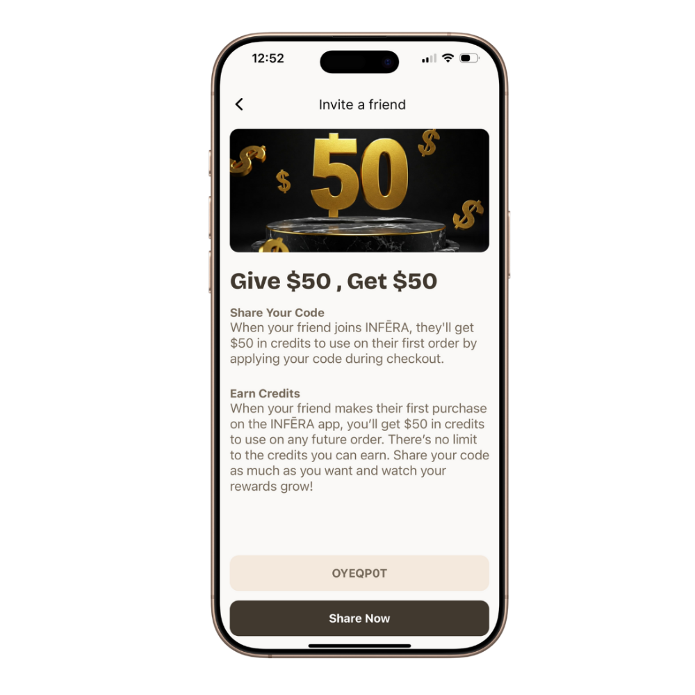 Invite friends to experience the INFERA difference and earn exclusive rewards for every referral. Whether it’s discounts, bonuses, or early access to new features — giving glow has never been so rewarding.