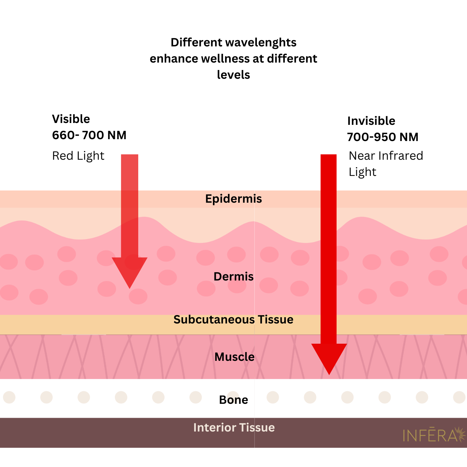 Red and near-infrared light do something simple—but powerful: they reach beneath the skin’s surface to support your cells where they need it most.
